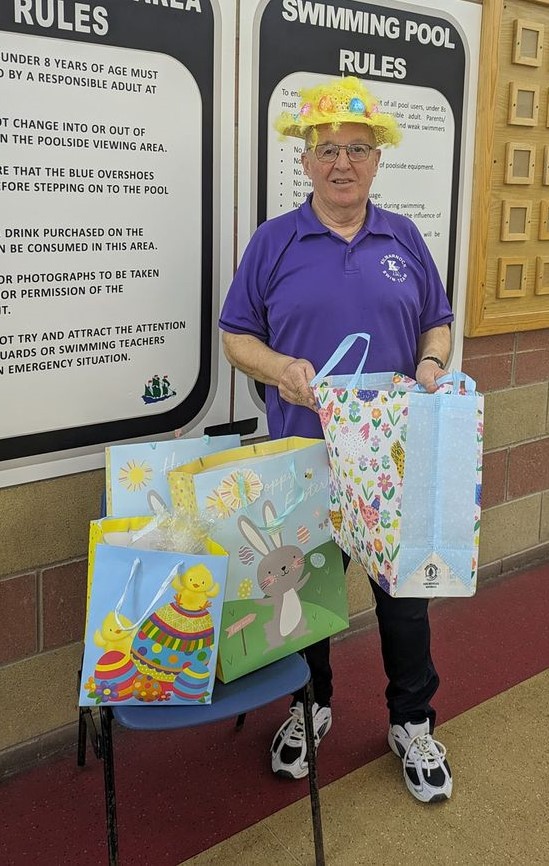 Our very own Easter Bunny Ron helped draw the Easter raffle on Tuesday night.